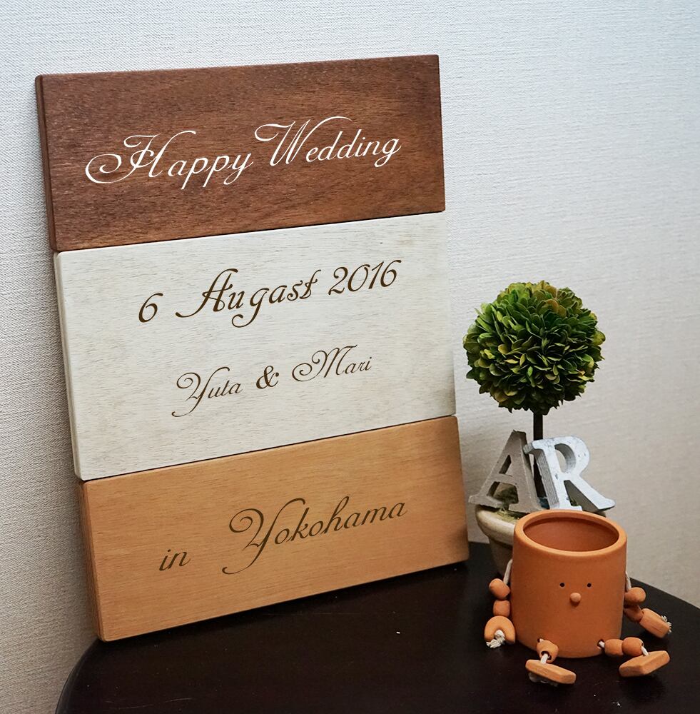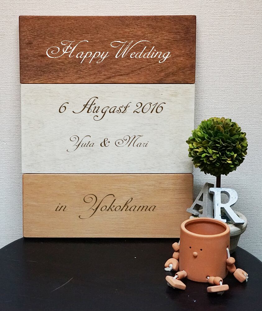 特にご要望がなければ、サンプル1枚目のような形でお作りいたします。(お二人のお名前・結婚式の日時・会場名・メインメッセージを入れております)