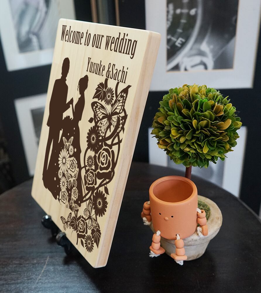 ○お二人のお名前と結婚式の日時、メッセージなどをご自由にお入れします。