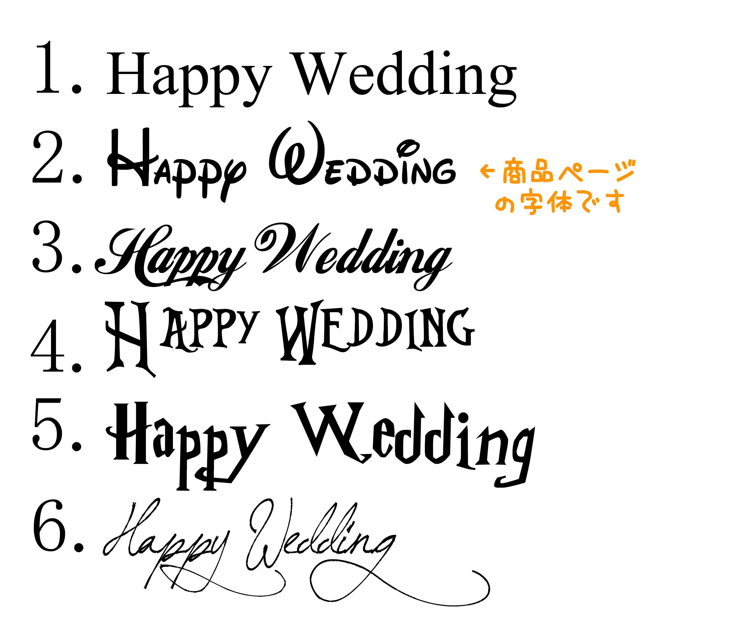 ○ご希望の方には、お好きな文字やイラストをお入れします。特にご要望がなければ、サンプル1枚目のような形でお作りいたします。(お二人のお名前・結婚式の日時・メインメッセージを入れております)