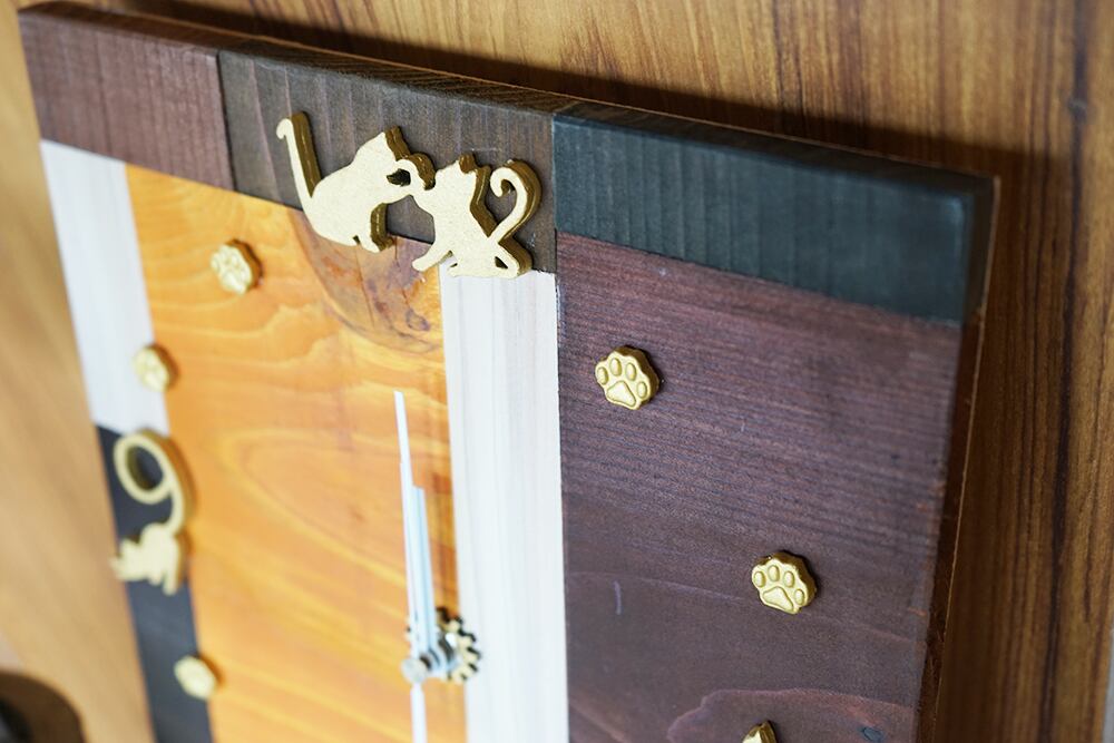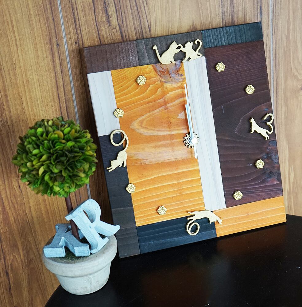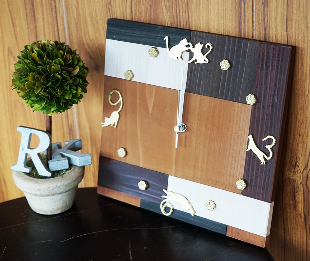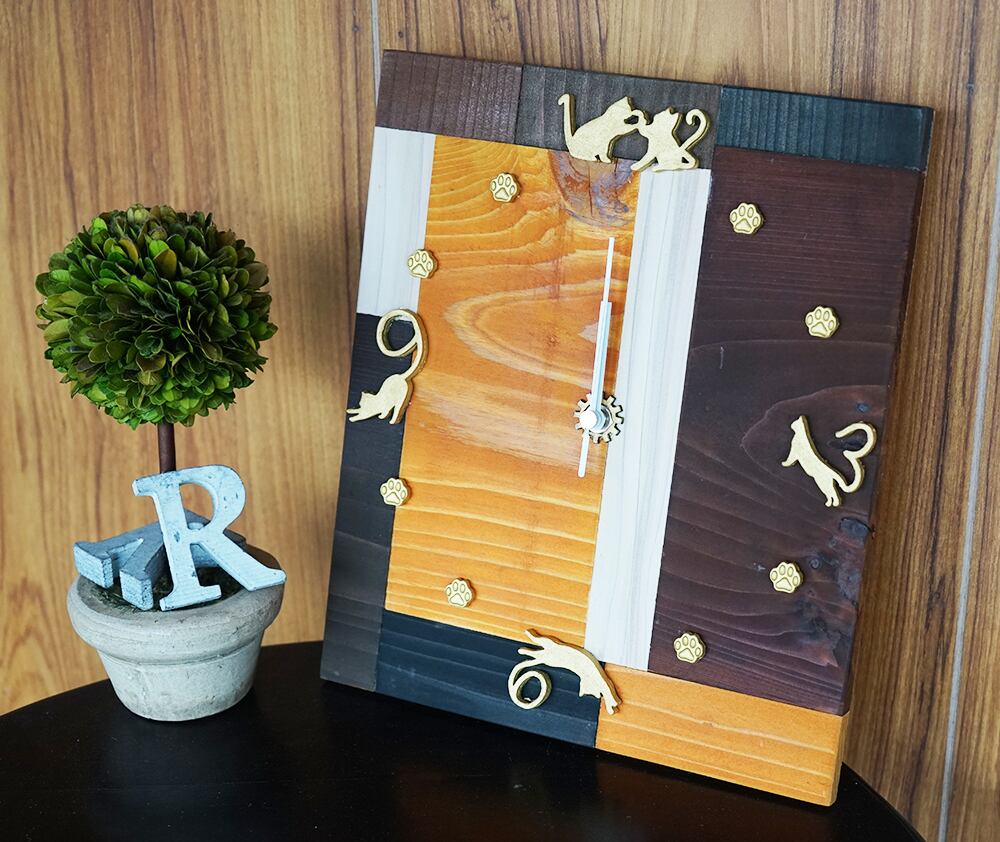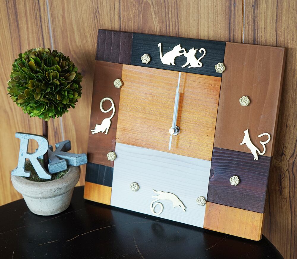 ○色々な木を合わせた寄せ木アートは、とってもアンティークな一品です。木の組み合わせやお色は木の在庫によって異なりますので、世界でたった一つだけのオリジナルの時計です♪