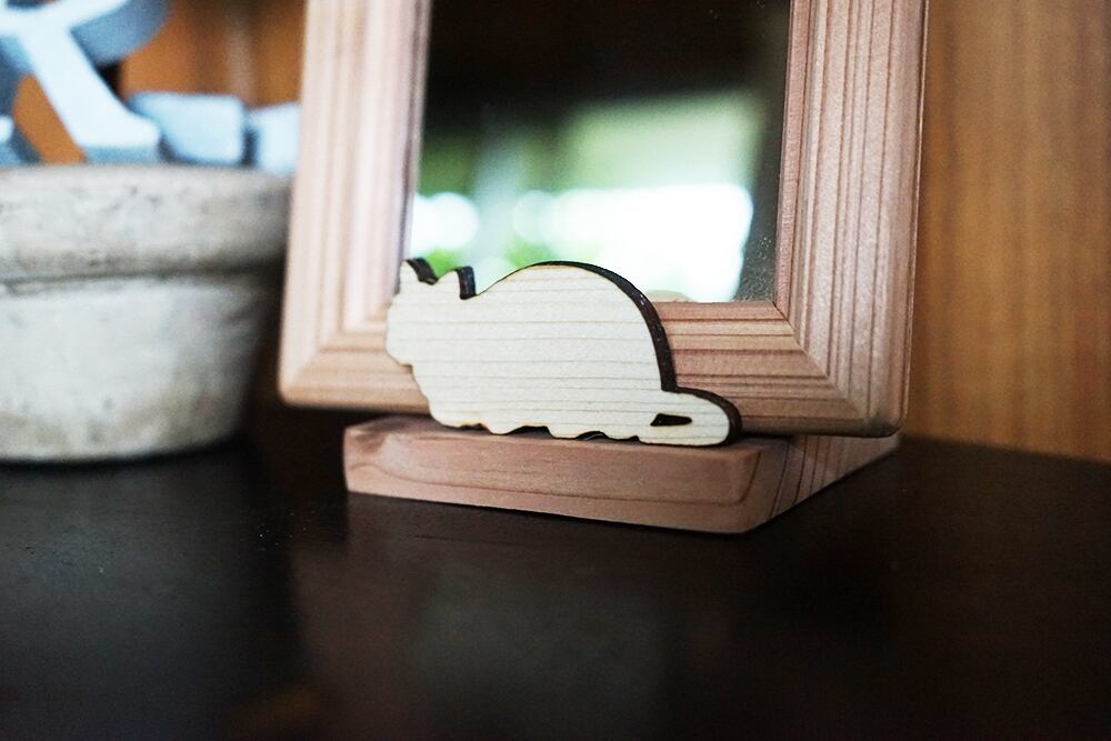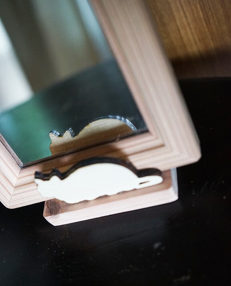 ○木製のミラースタンドですので高級感もあり、プレゼントにも最適です。猫好きの方への結婚祝い、新居祝い、そのほかプレゼントにいかがですか?