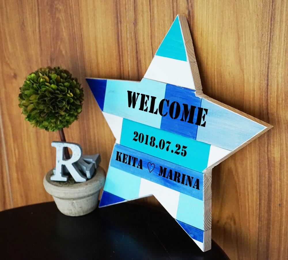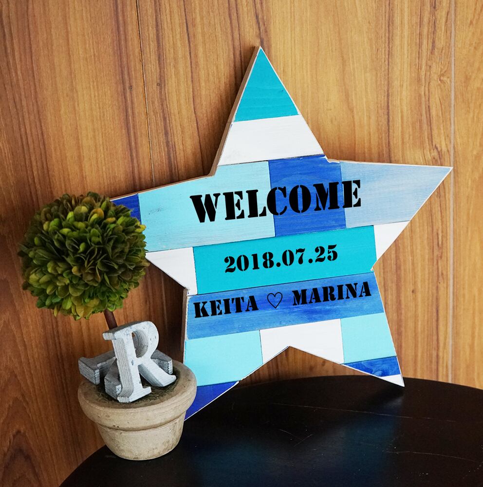 *☆* アンティークな木製ウェルカムボード・星形・海の色詰め合わせVer.です♡木のぬくもりが好きな方、海&夏をテーマにしたウェディングにお勧め☆ *☆*